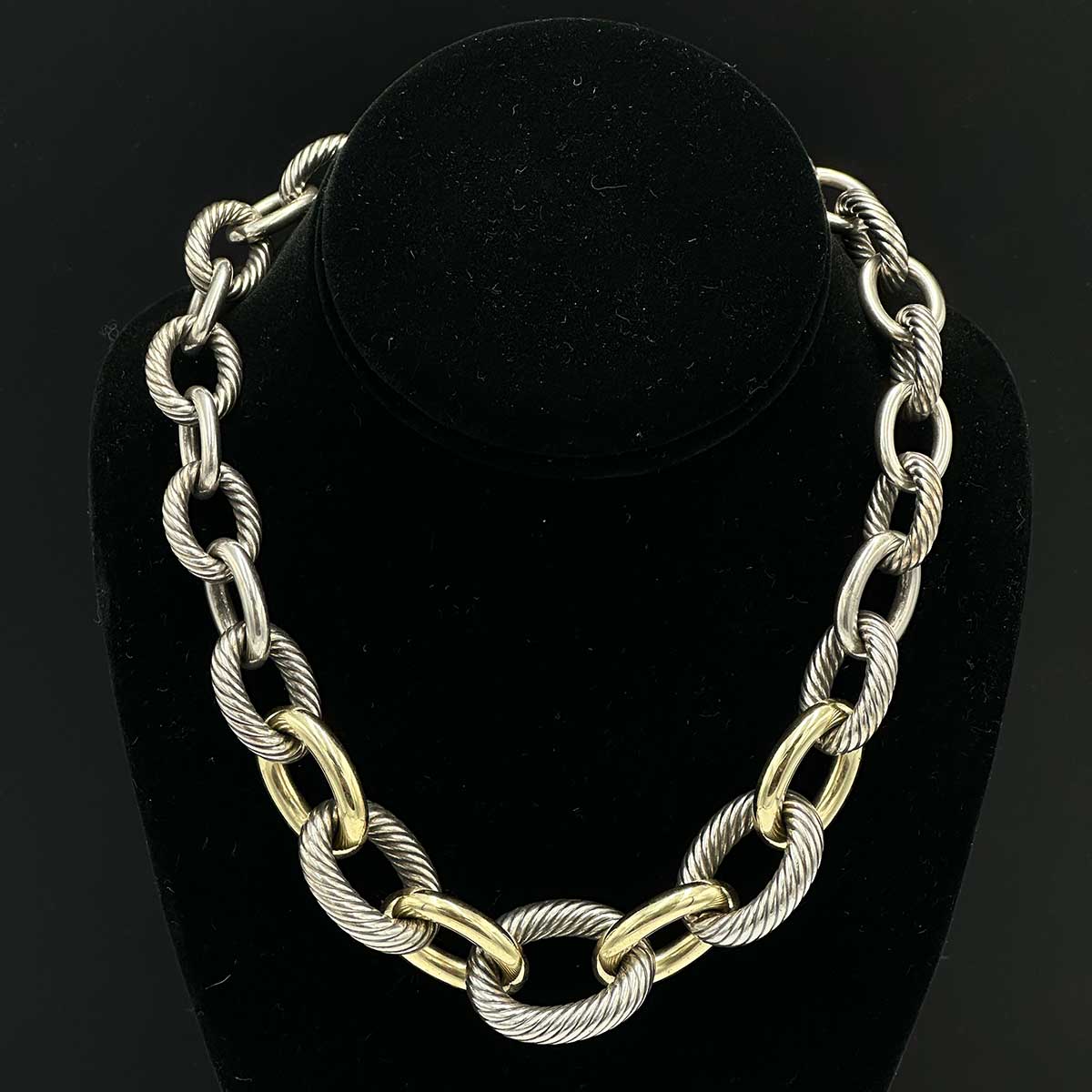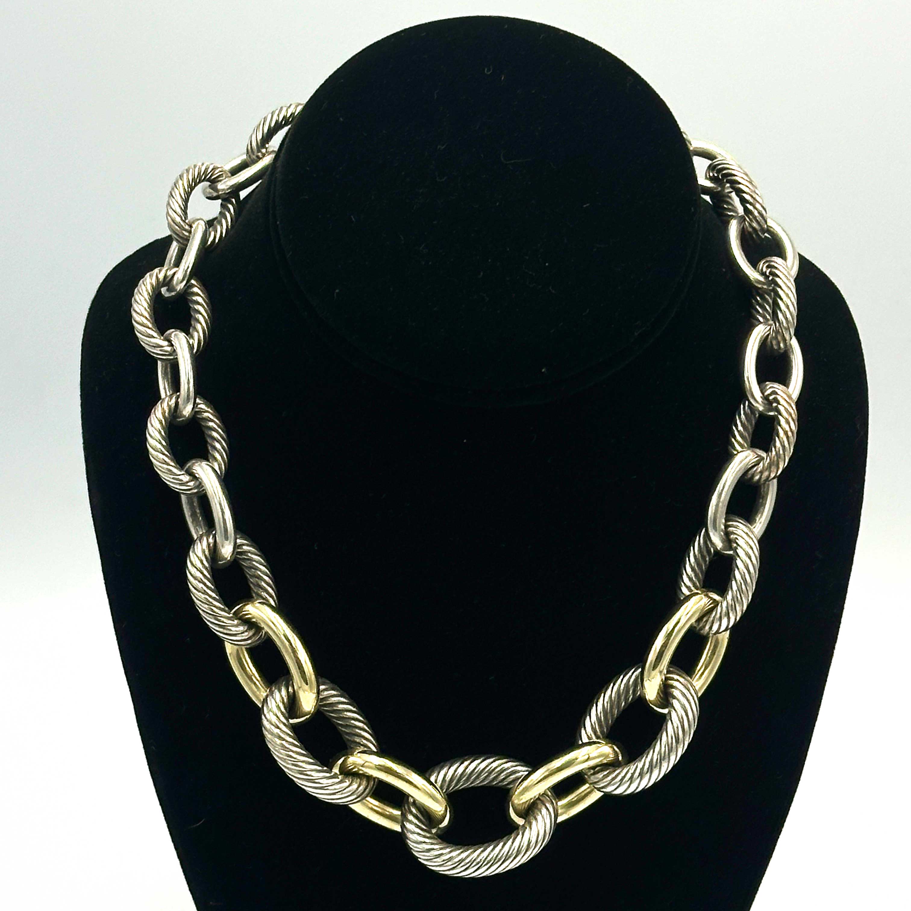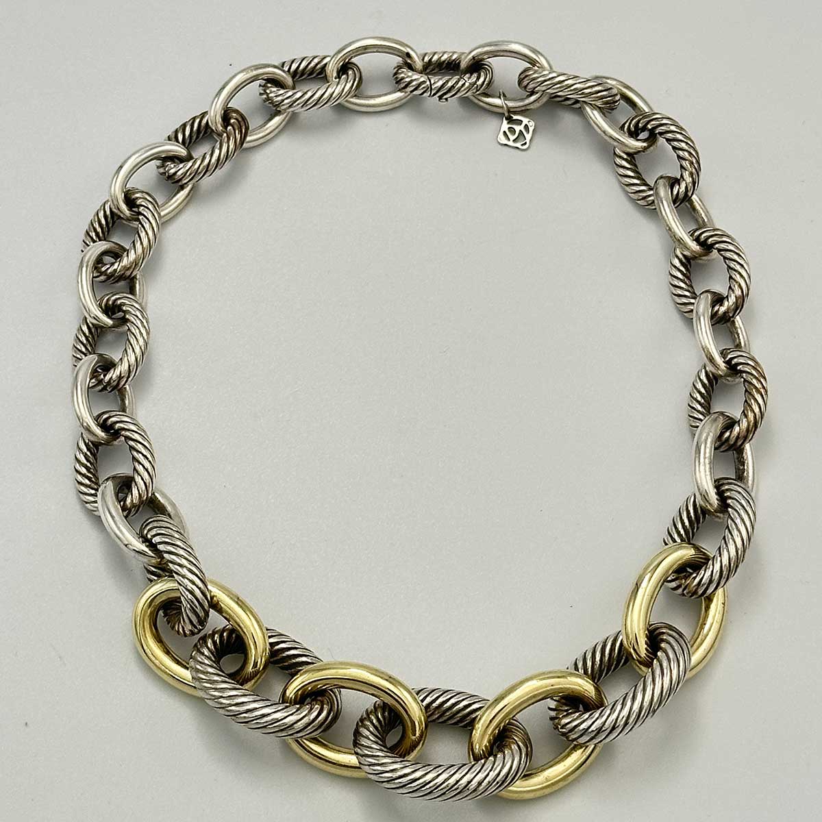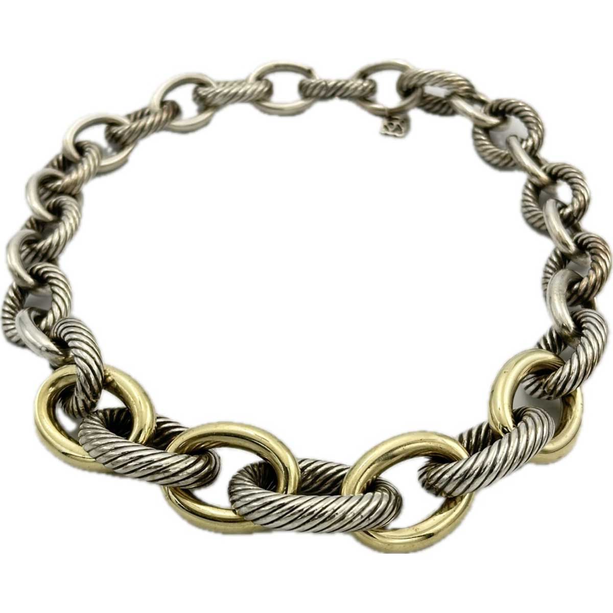 David Yurman XL Graduated Cable Link Necklace, Sterling Silver and 14k Gold Plated