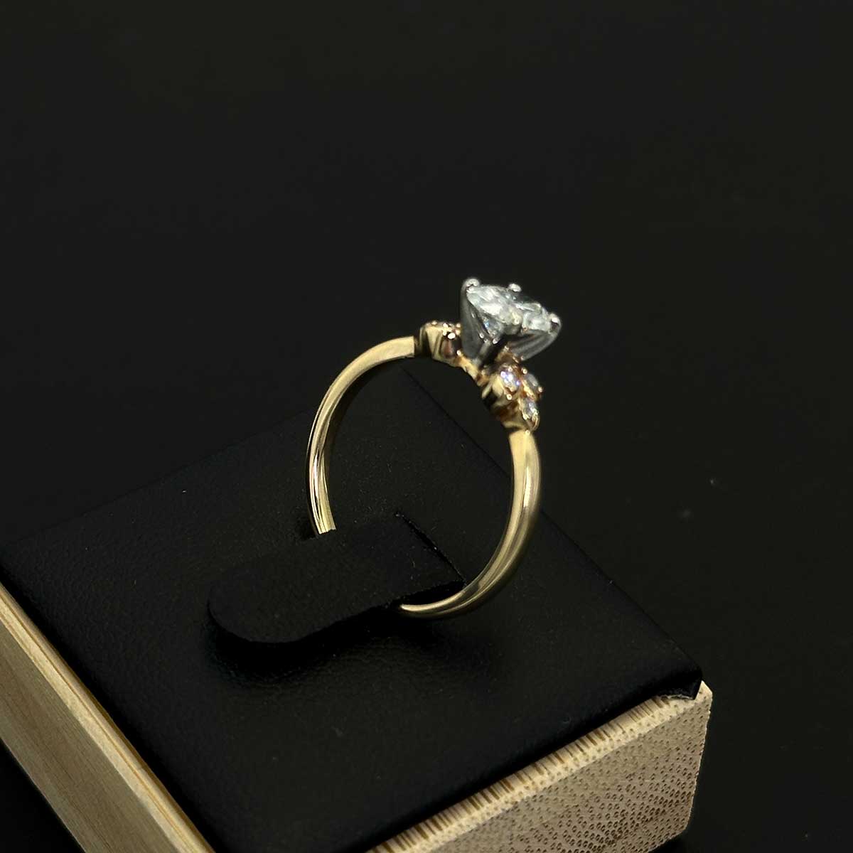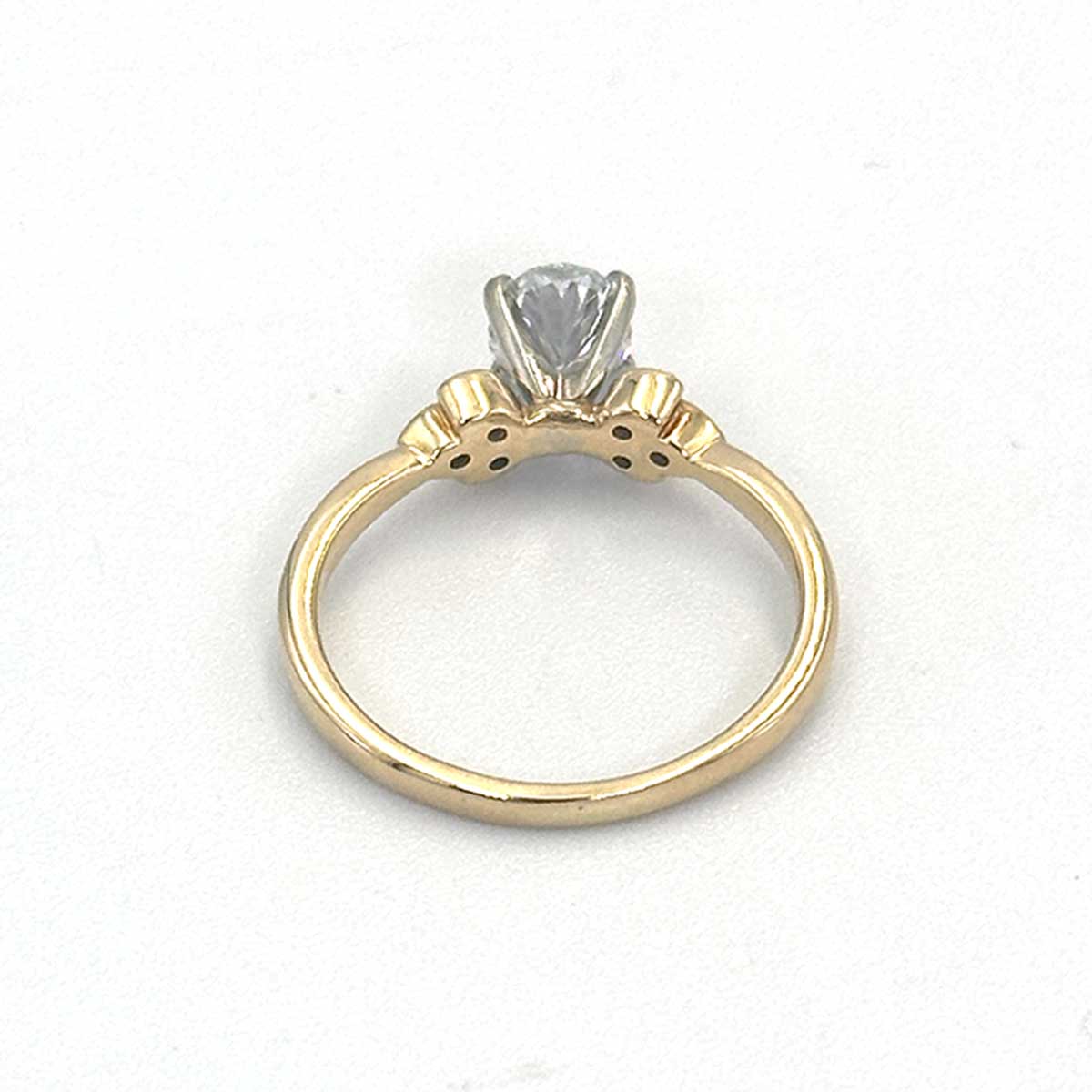 This diamond is mounted on a lovely 14k Yellow gold shank, with a 14k White Gold head