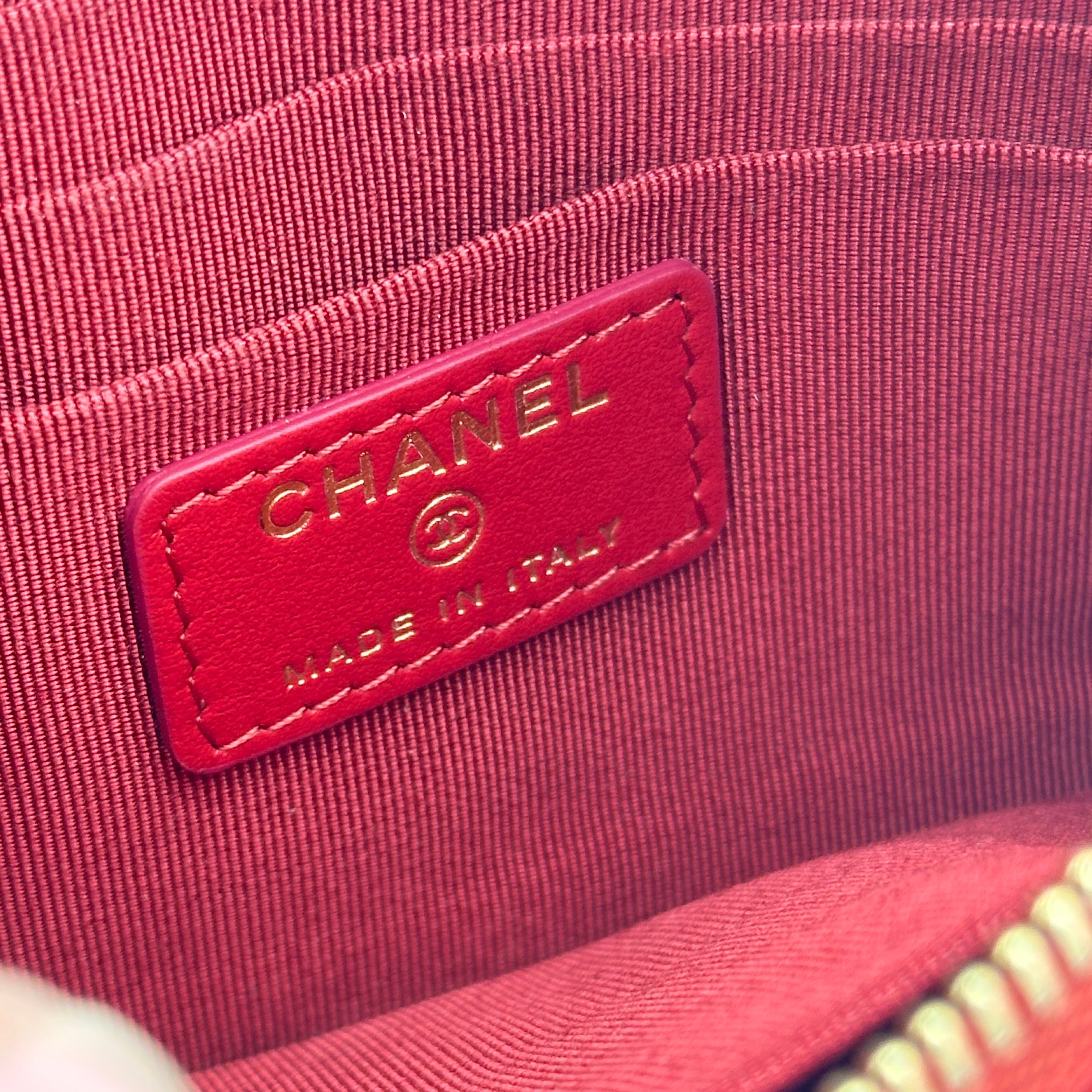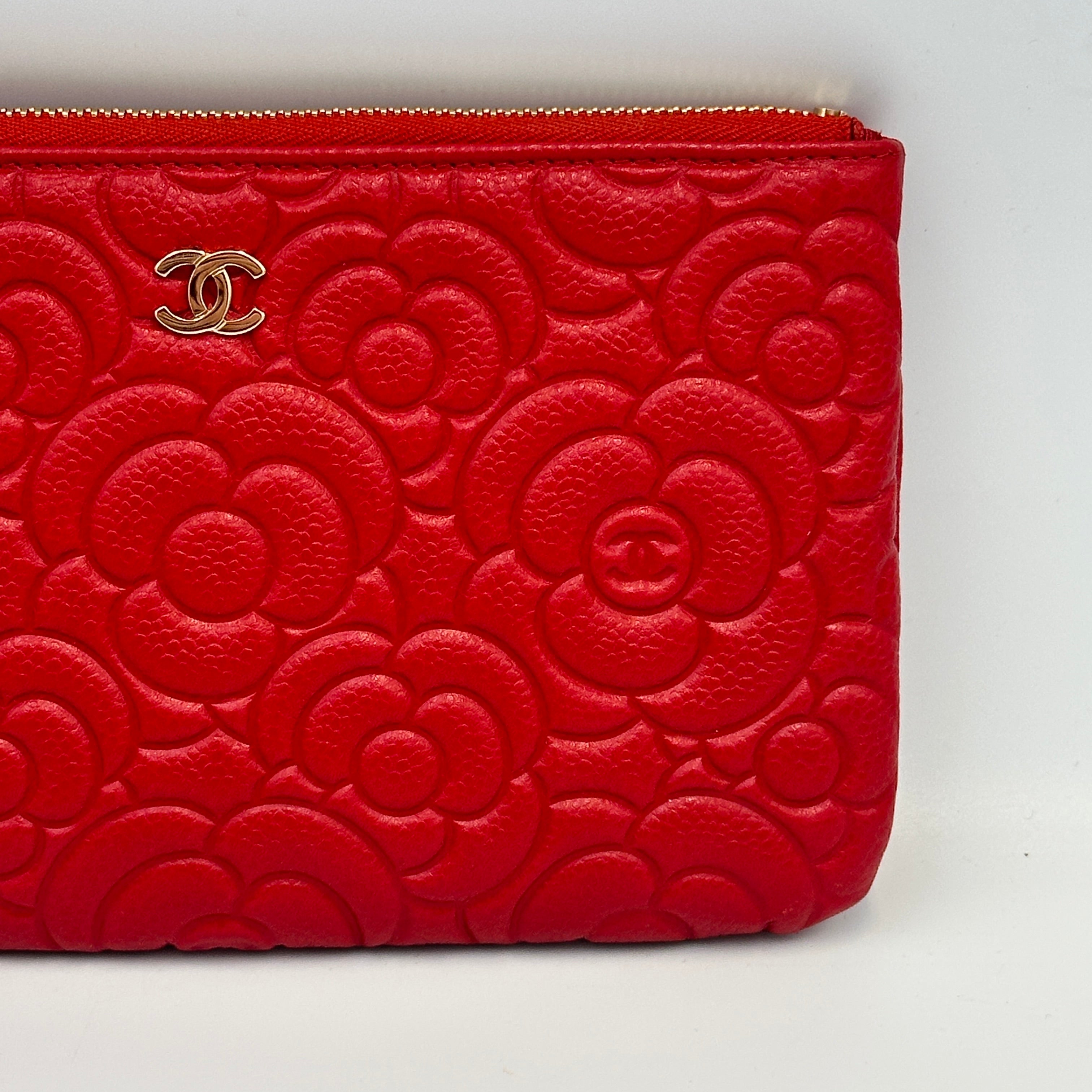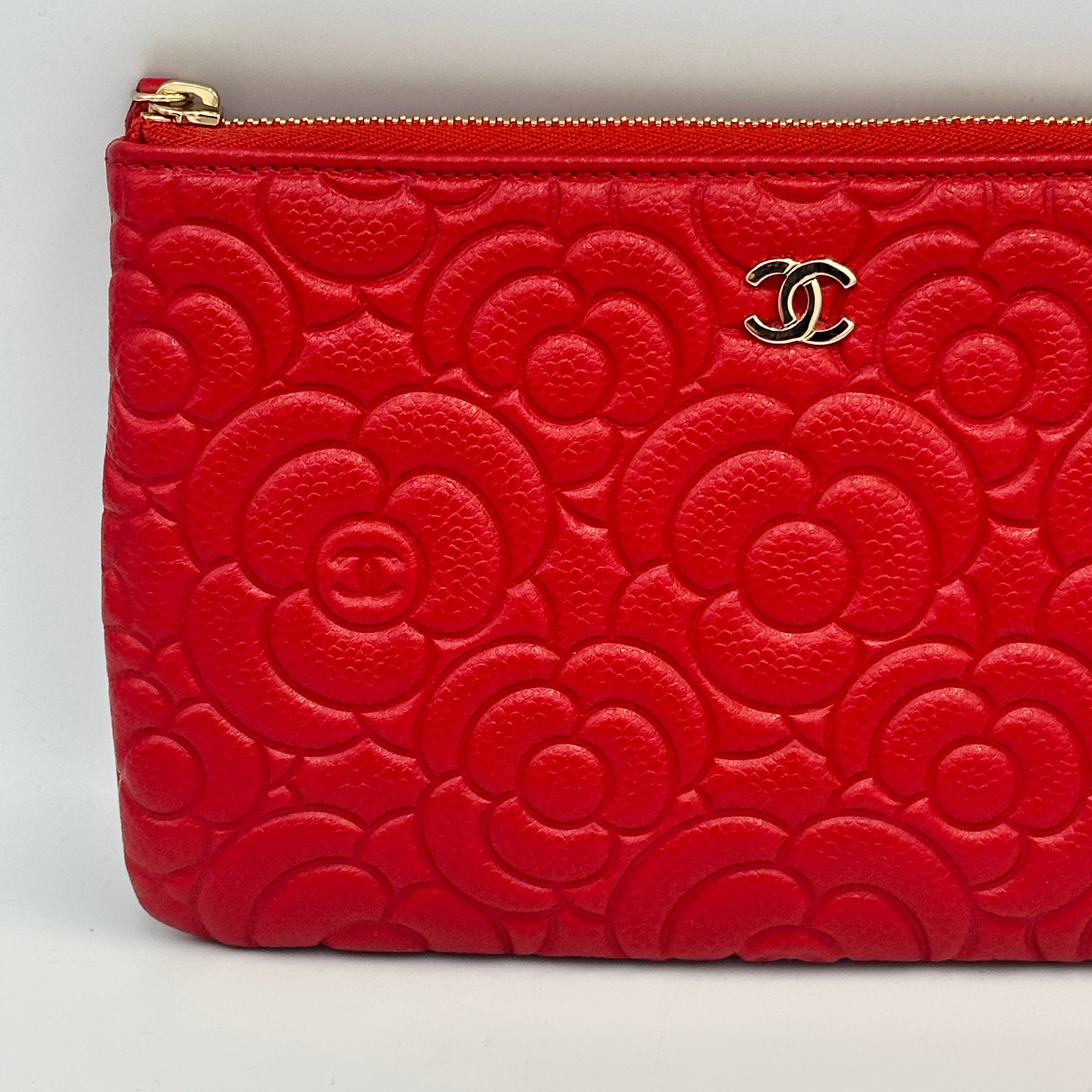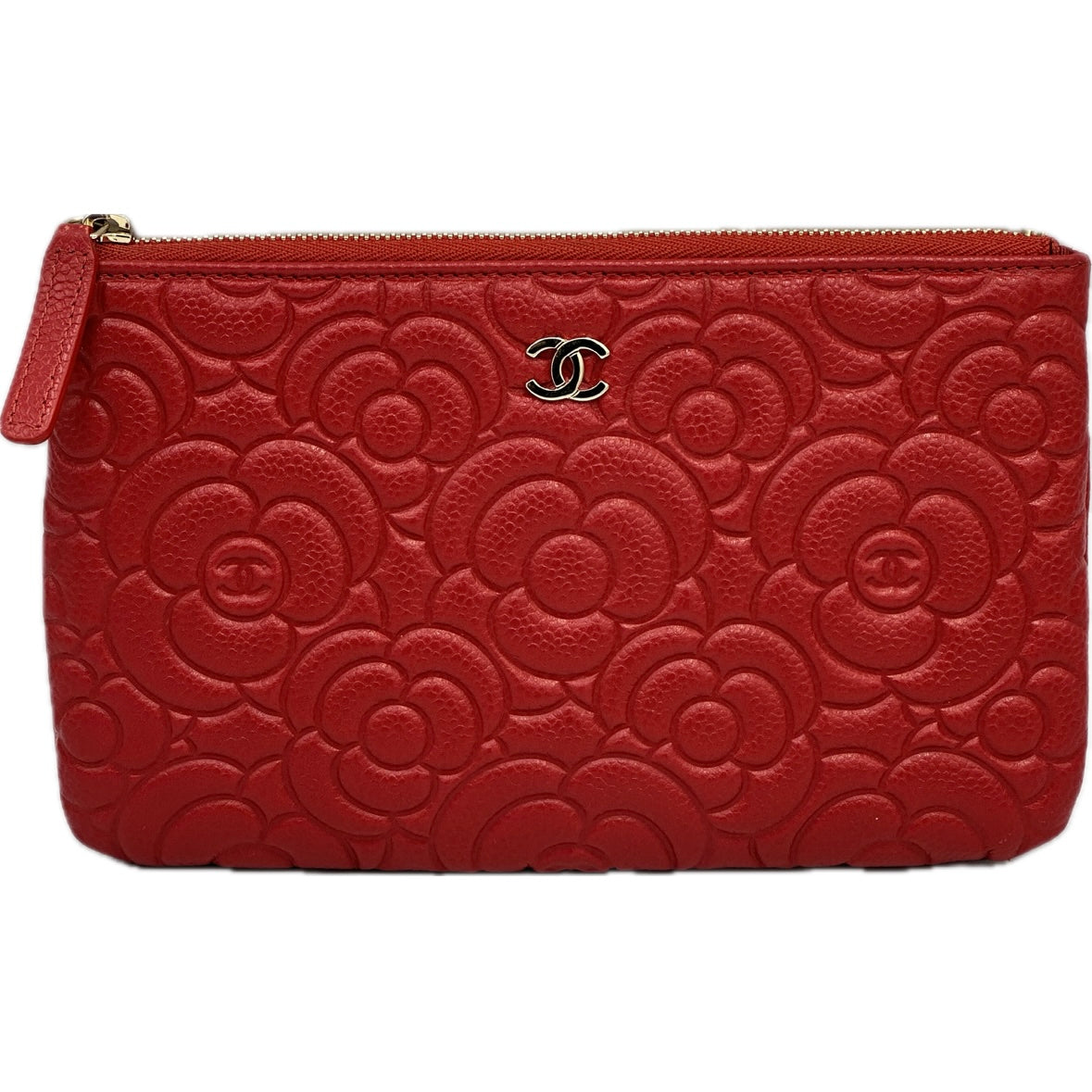 Chanel Caviar Camellia Embossed Cosmetic Pouch - Red