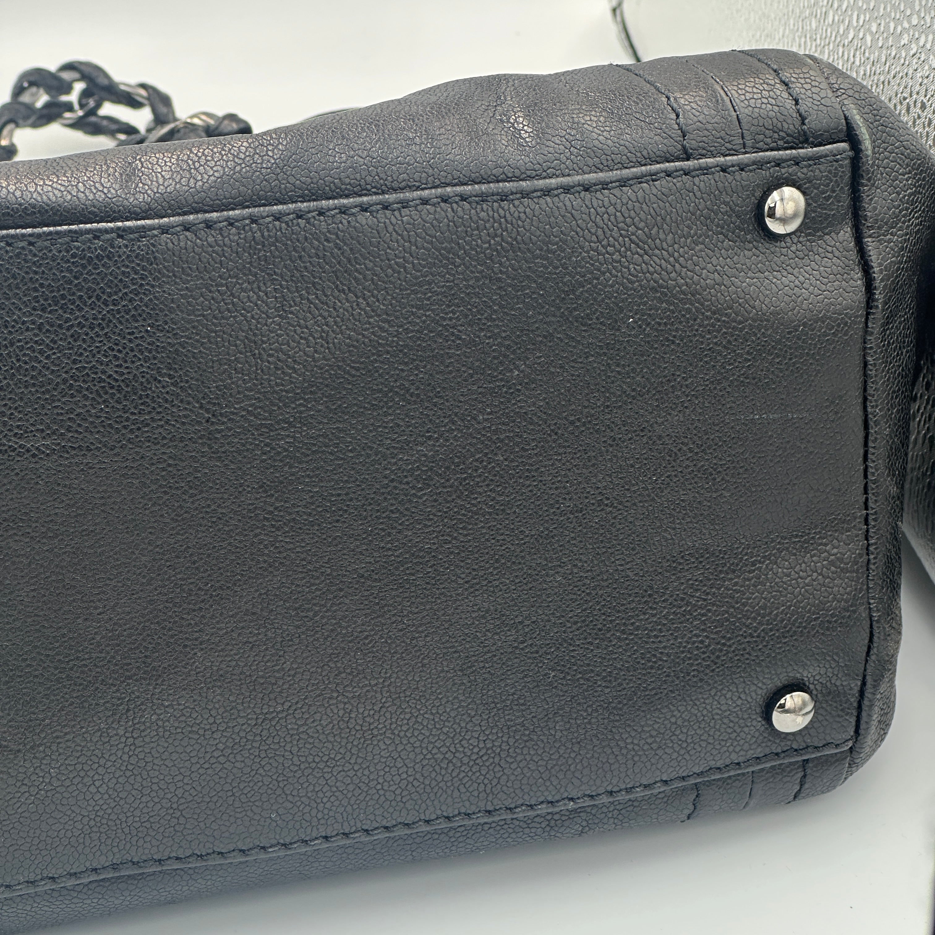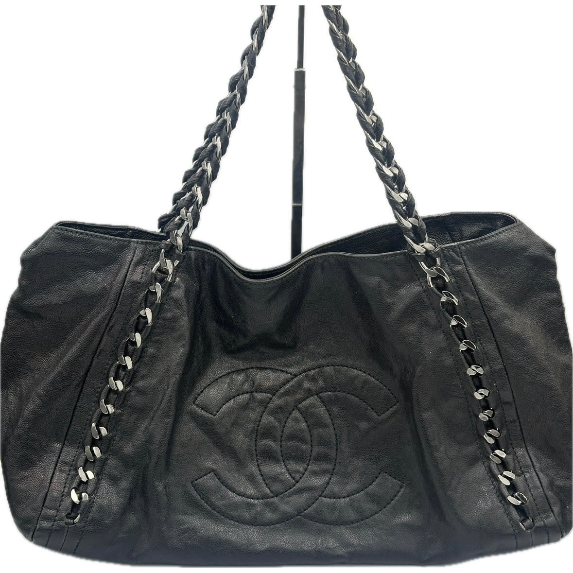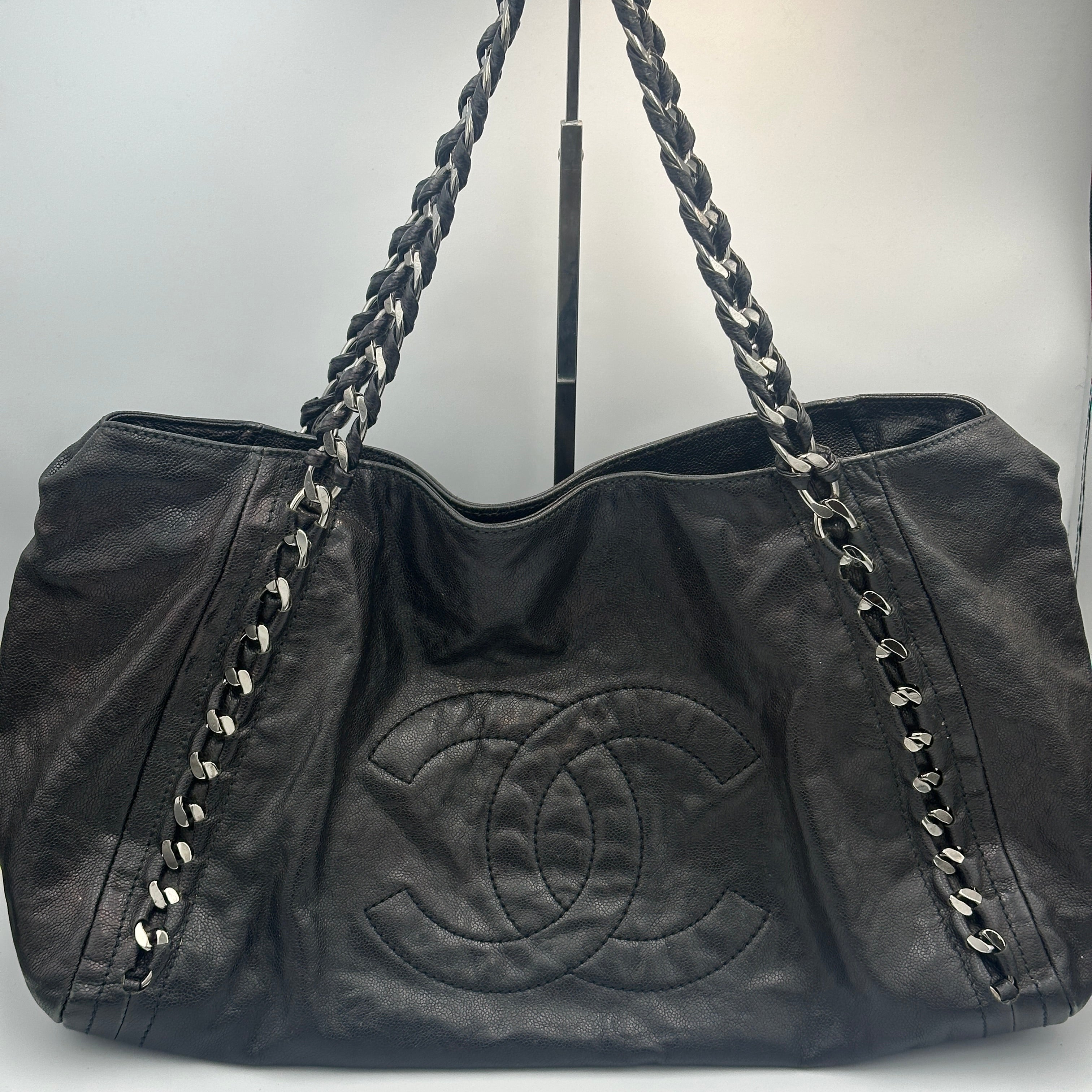 -Don't miss this leather tote bag from Chanel. Really nice black leather exterior that is very clean and a nearly spotless interior.