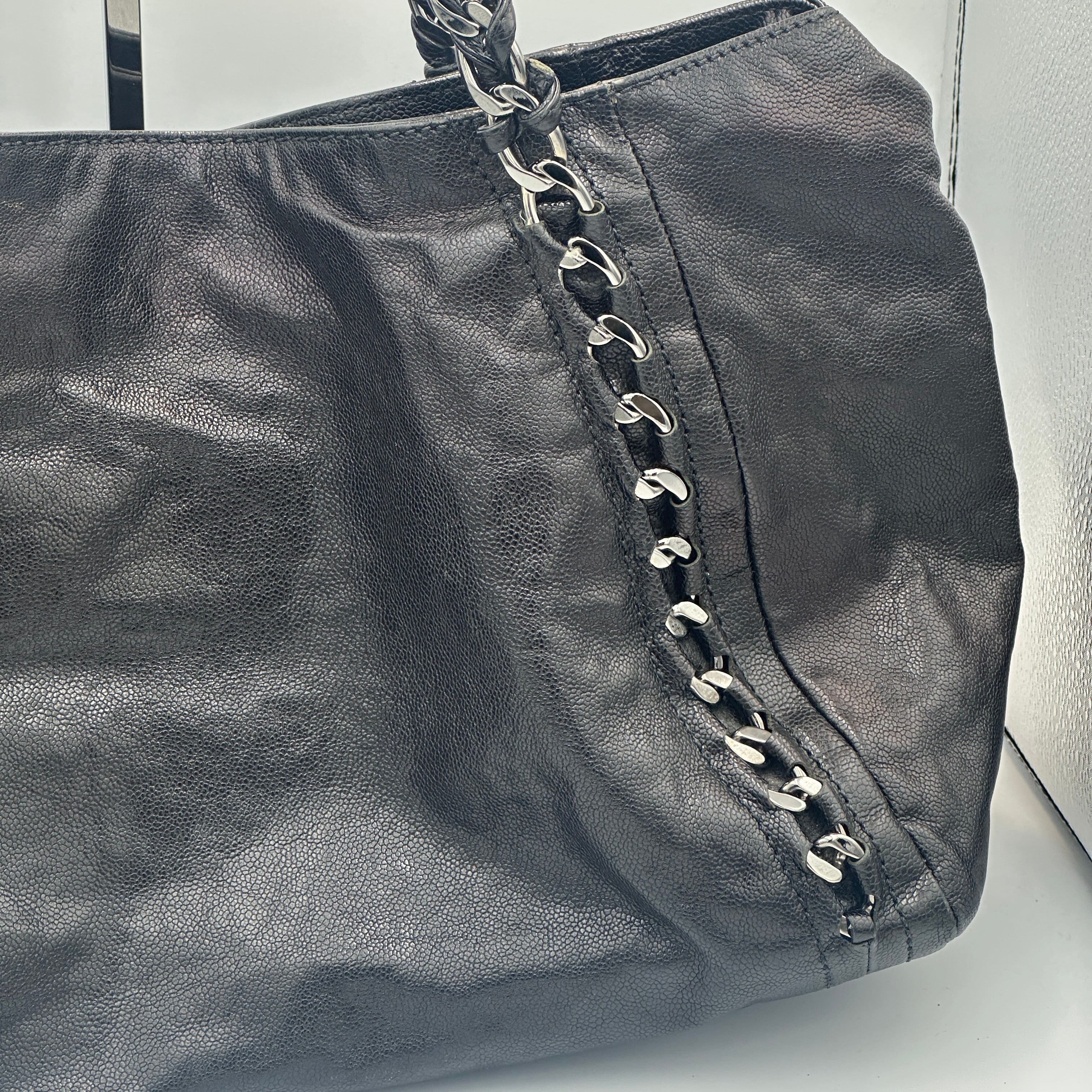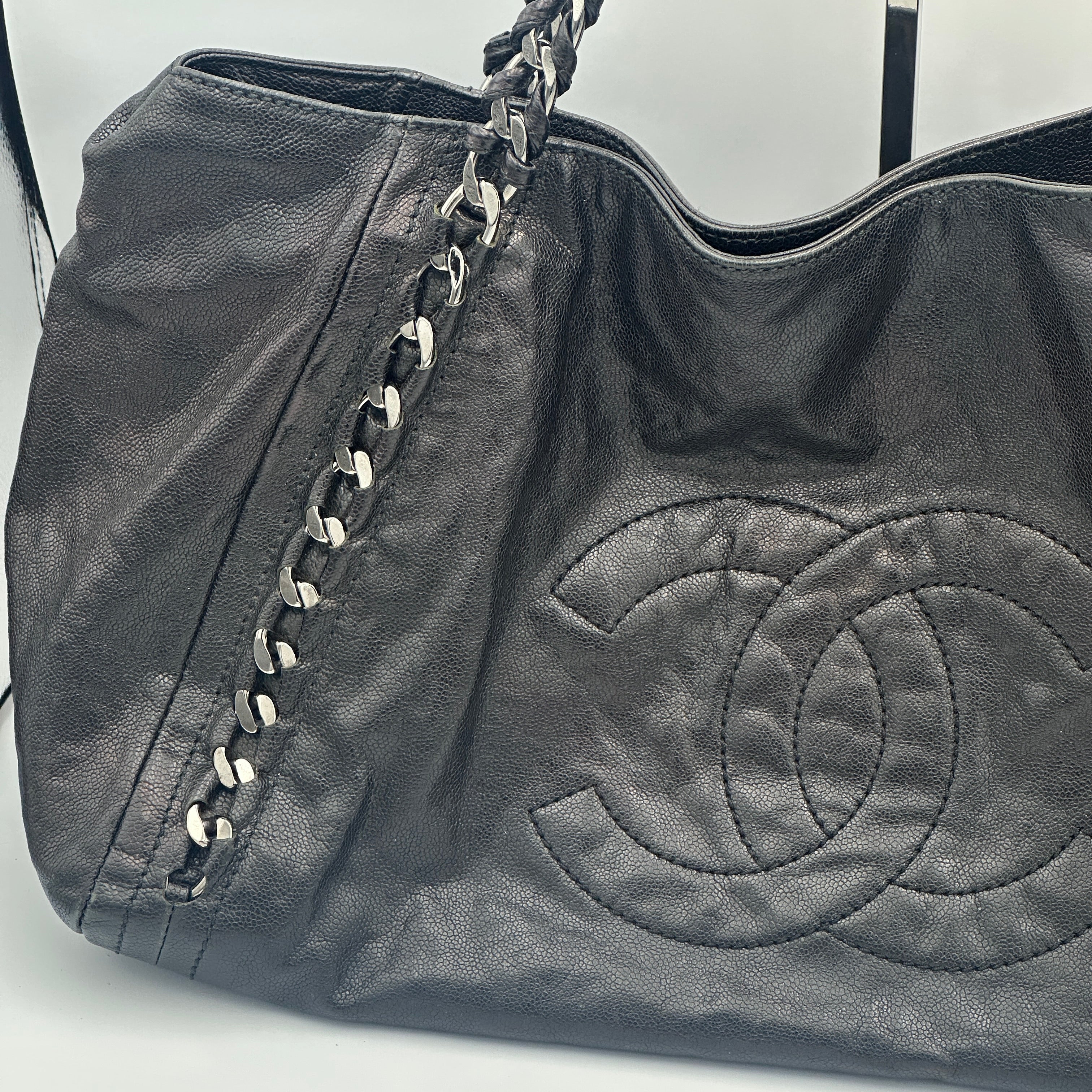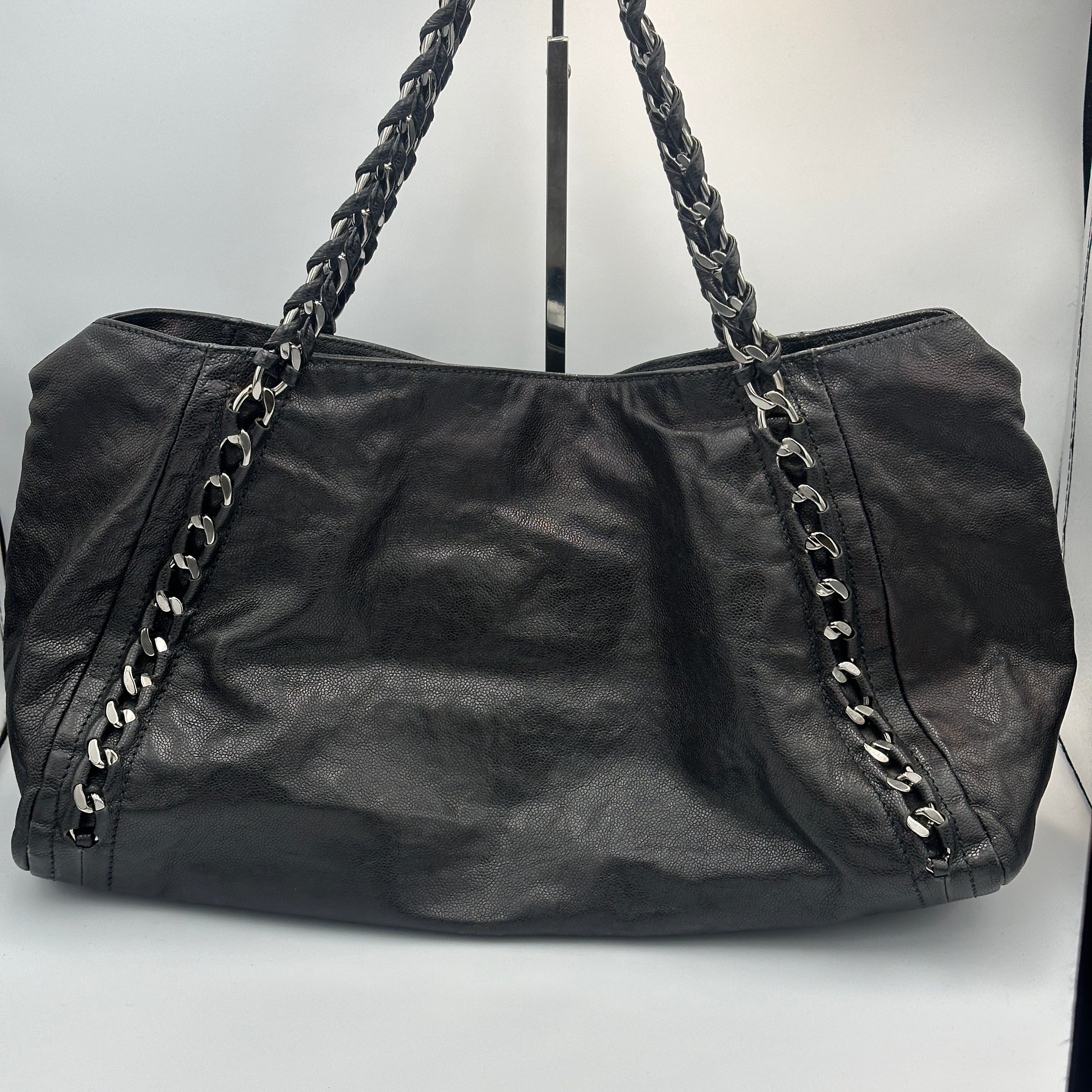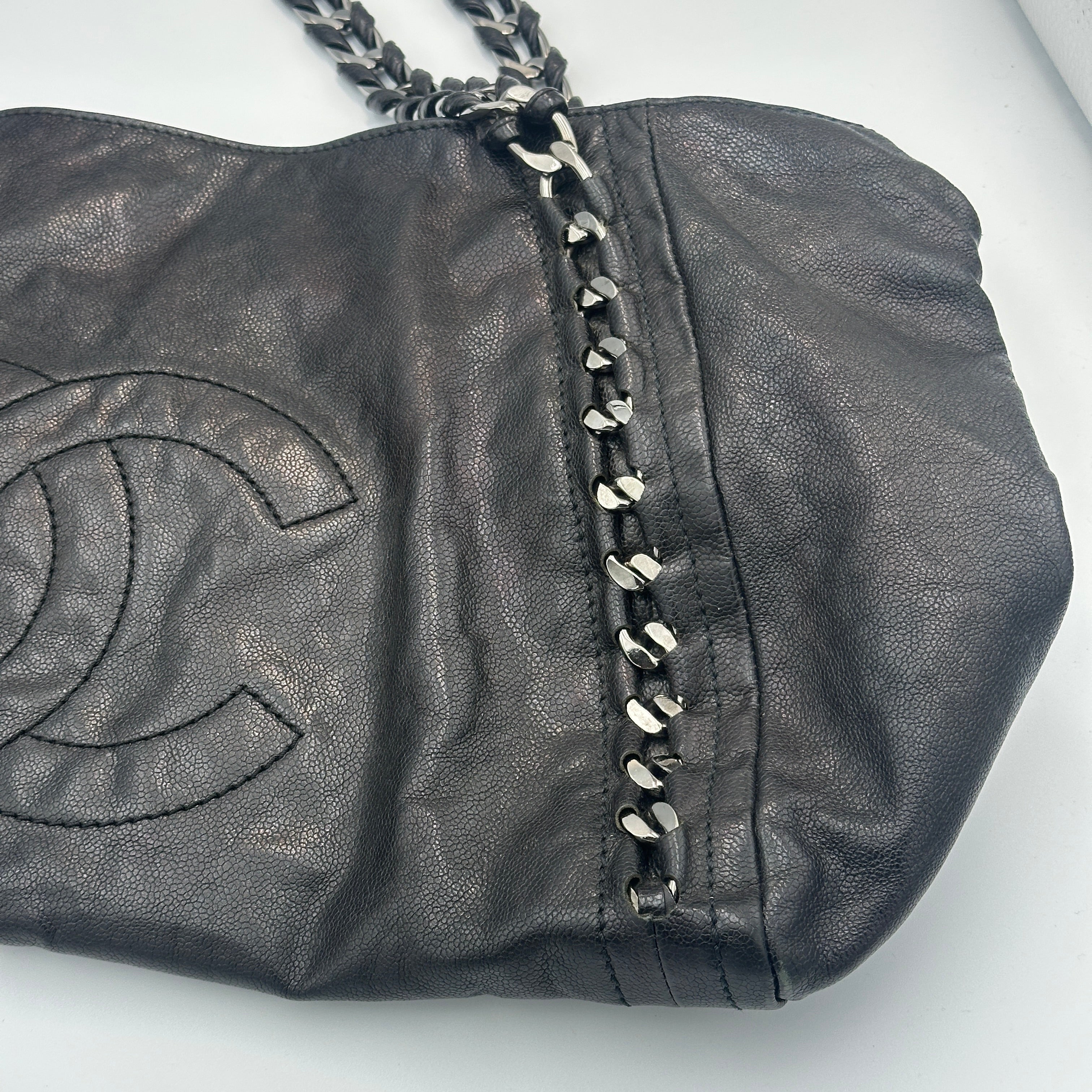 Chanel Black Leather Tote/ Hobo Bag with Chain Detail