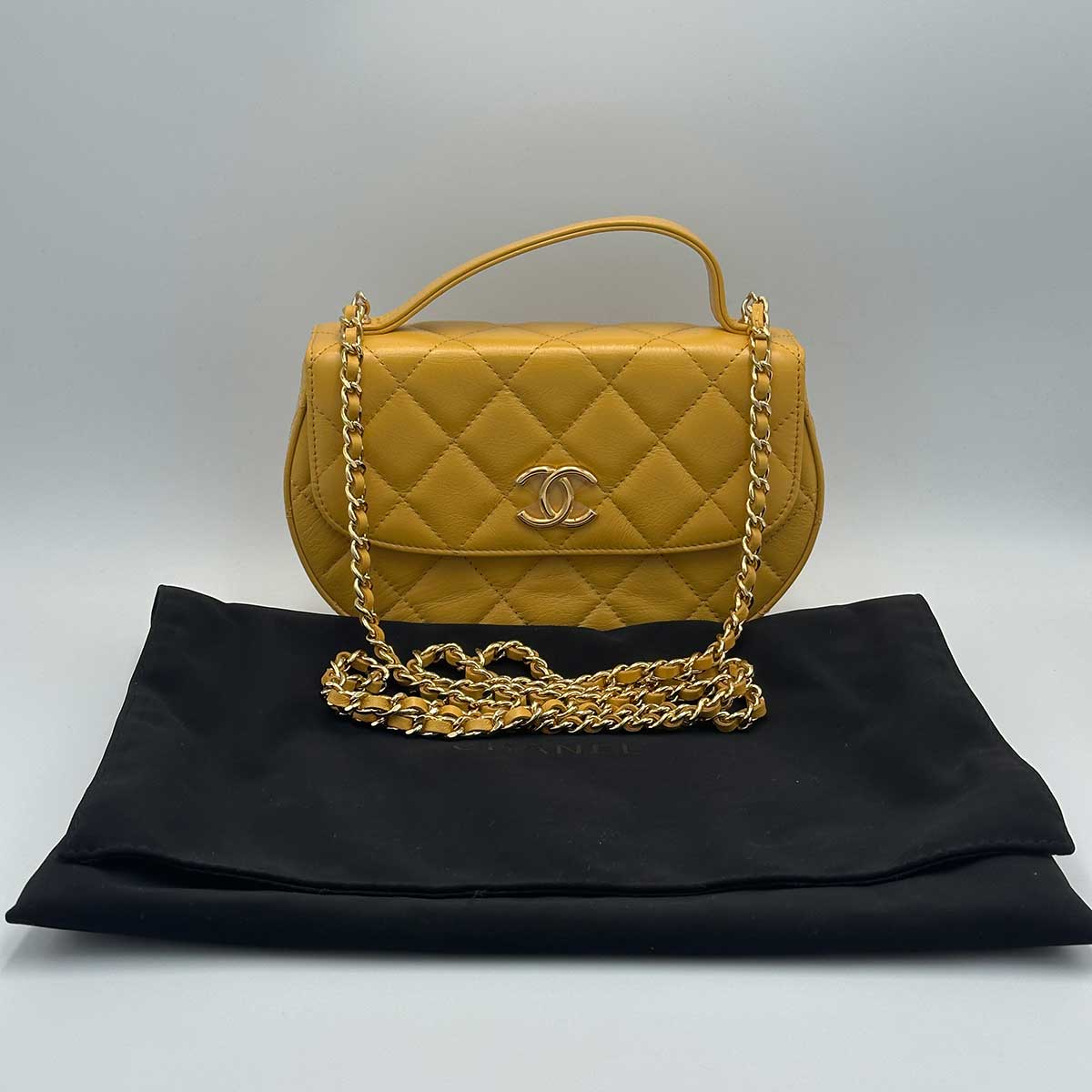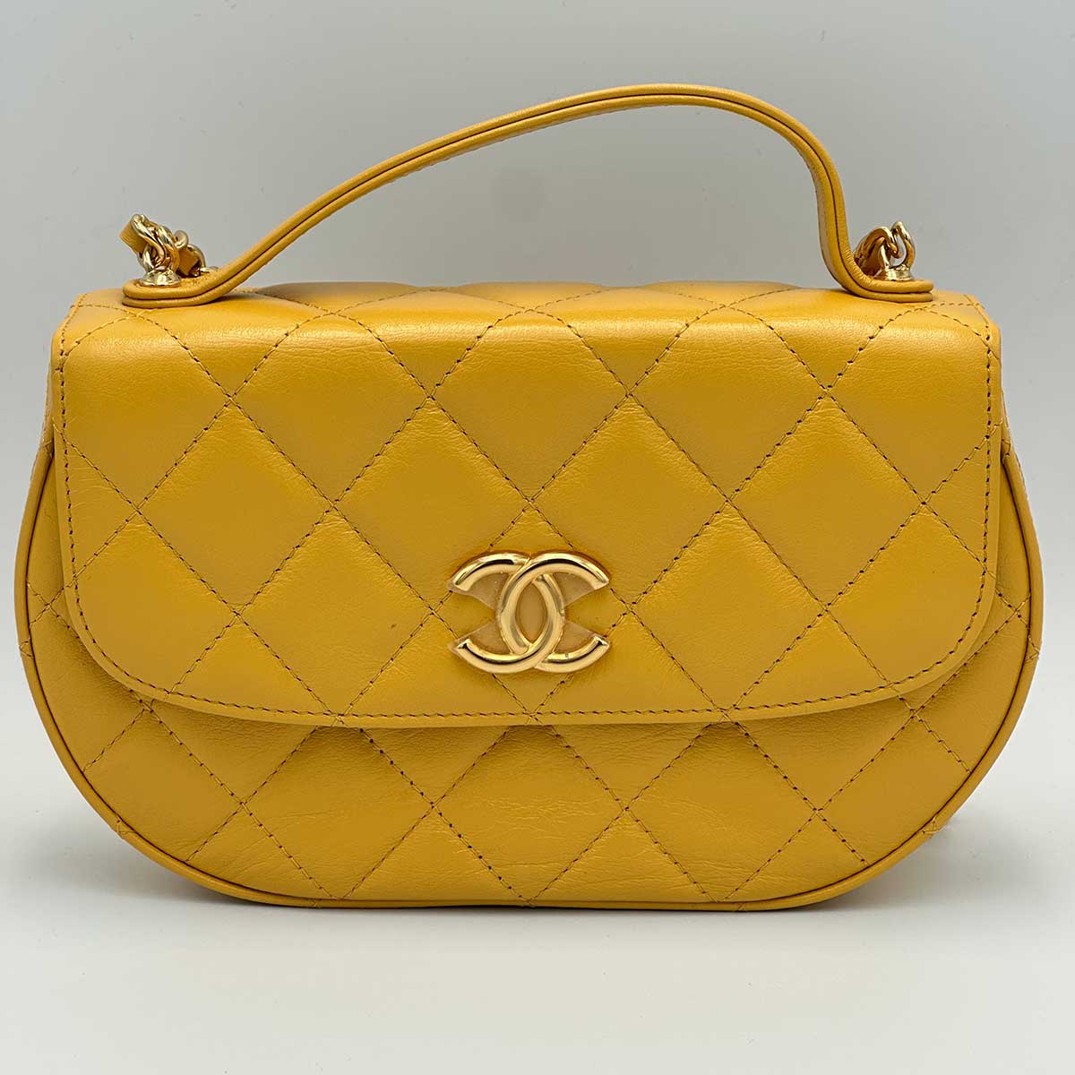 Chanel Mustard Yellow Lambskin Quilted Handle Crossbody Bag