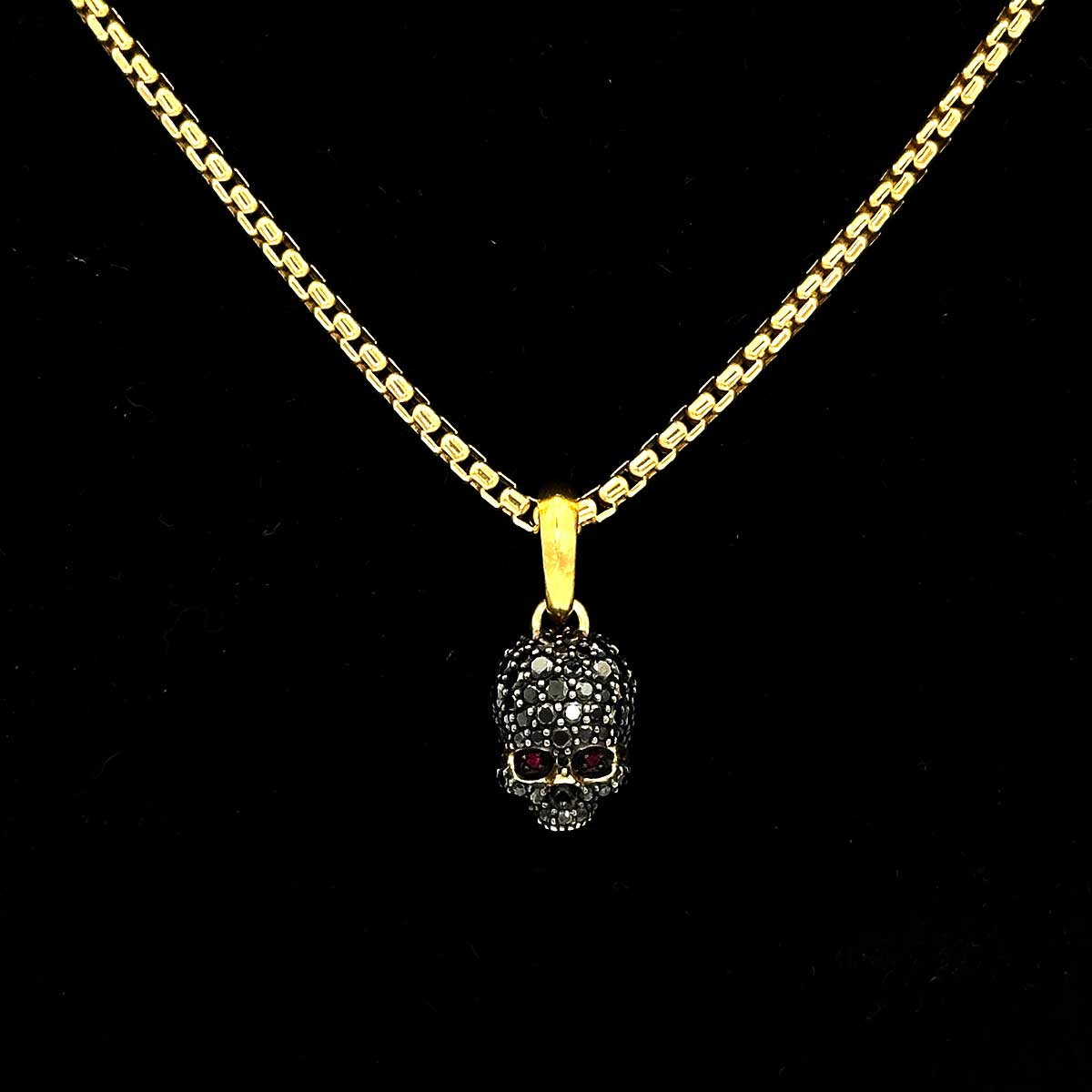 Full Pavé Black Diamonds, Rubies and 18K Yellow Gold, 14mm