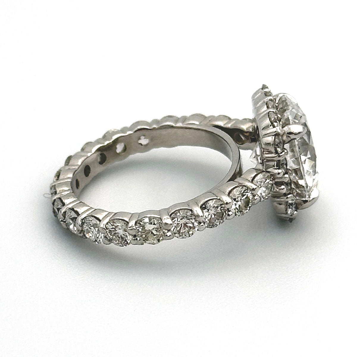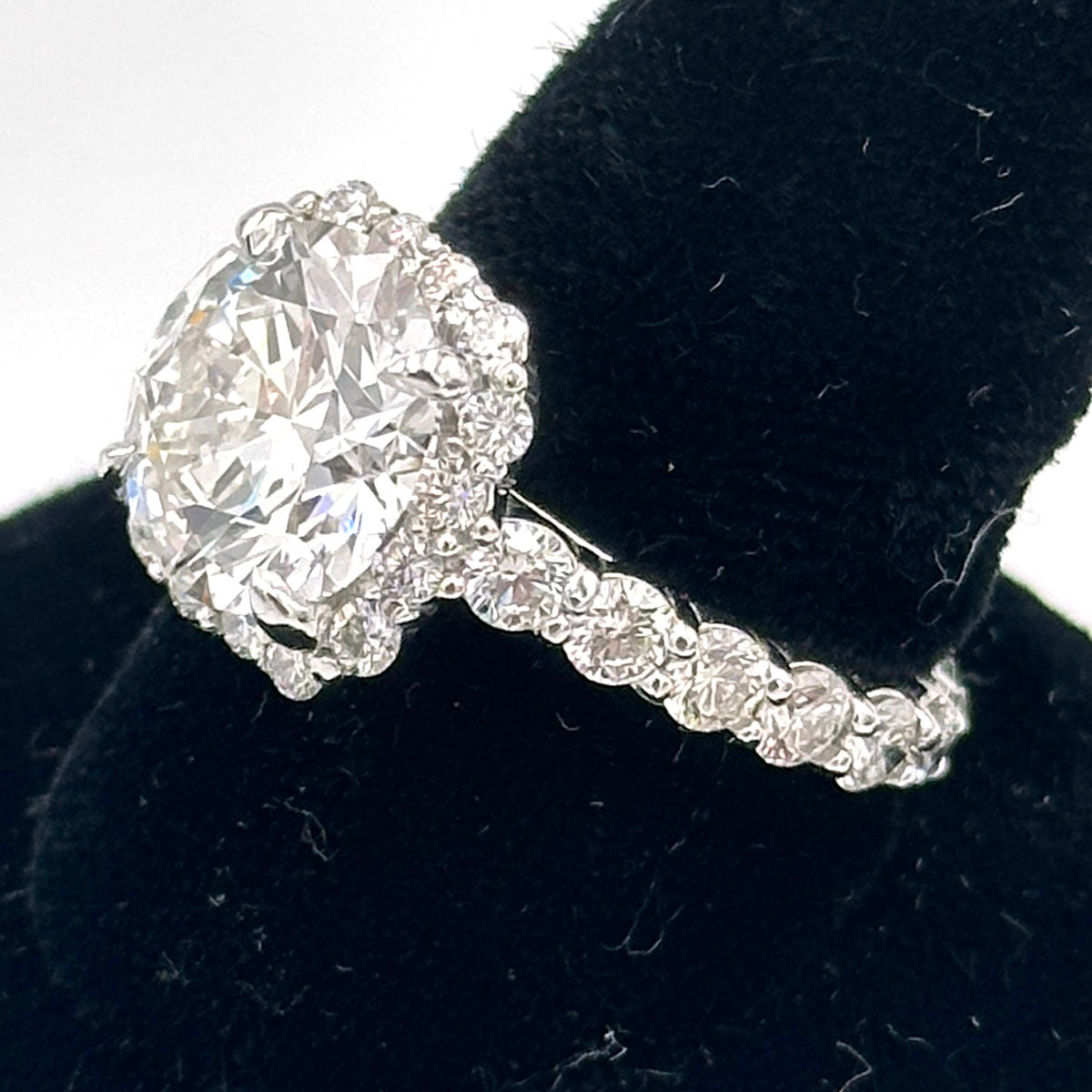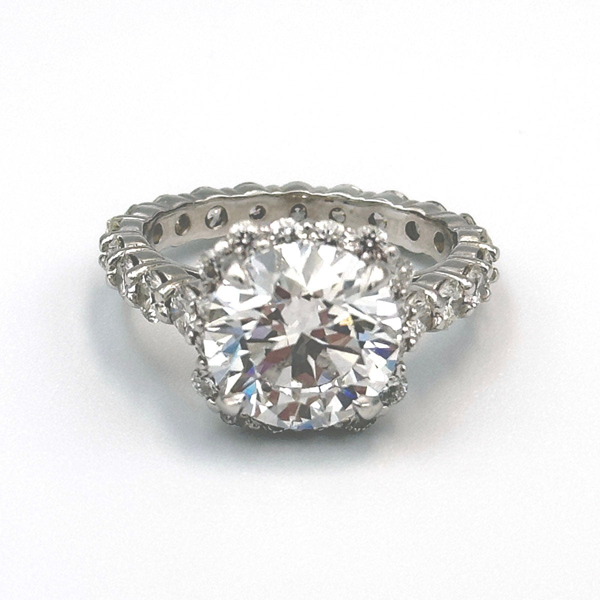Mix one gorgeous 4.62ct (Lab Grown) Round Cut Diamond with a halo and an infinity band, and you've got one incredible engagement ring!