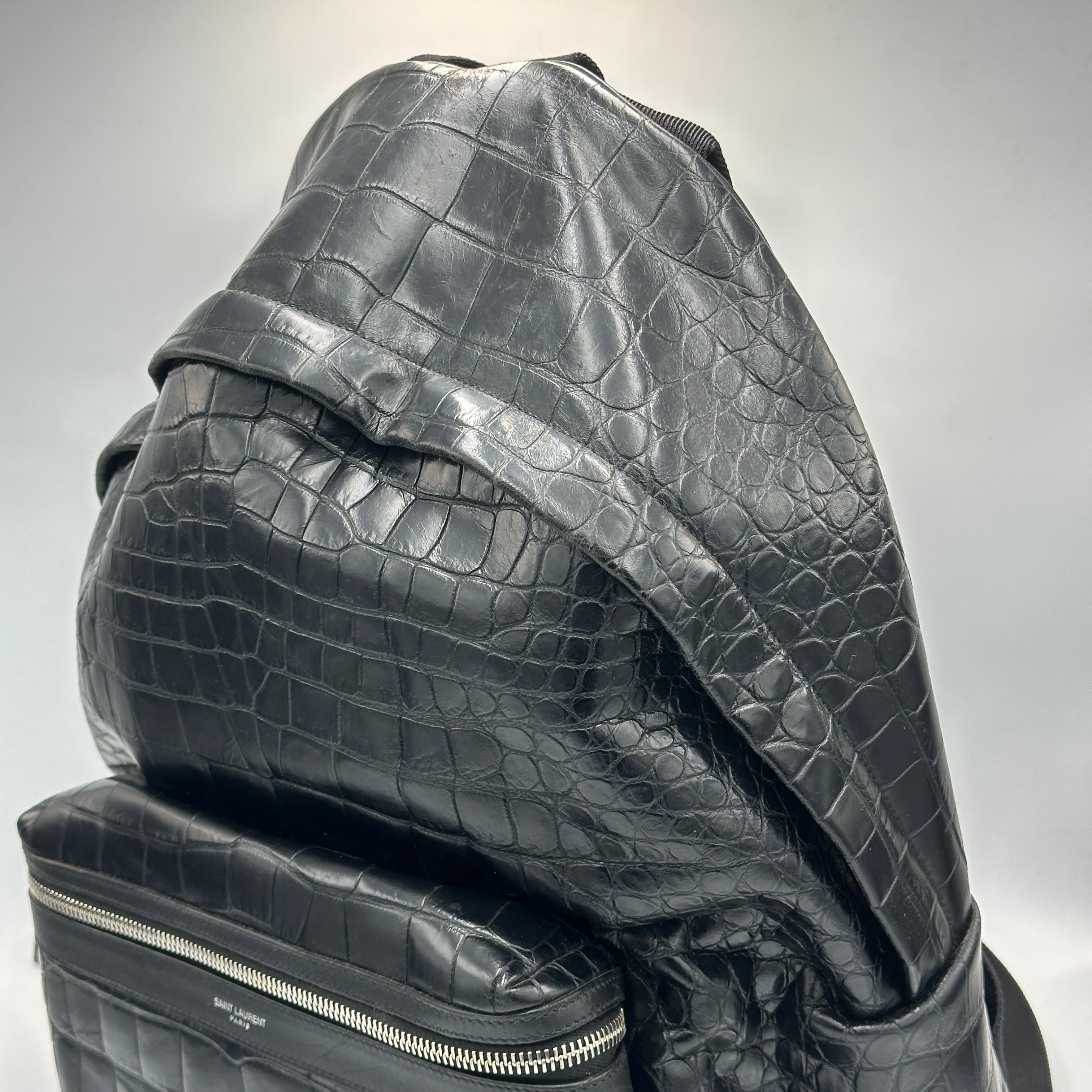Saint Laurent City Backpack in CROCODILE-EMBOSSED Leather