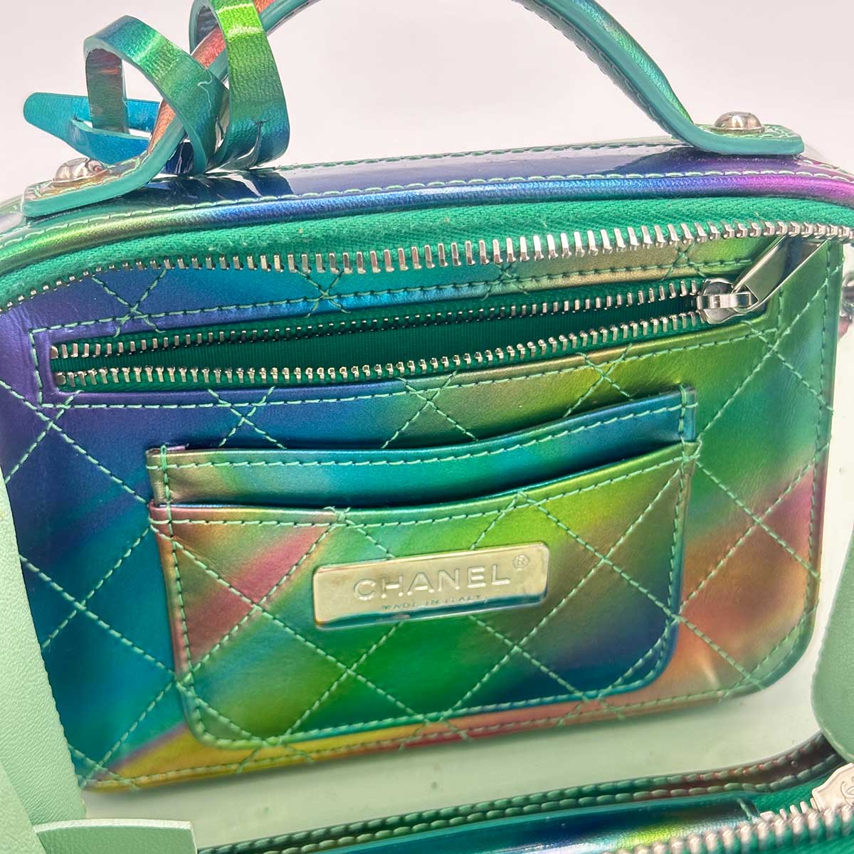 Chanel PVC Patent Calfskin Patent Lambskin Small CC Vanity Case - Green