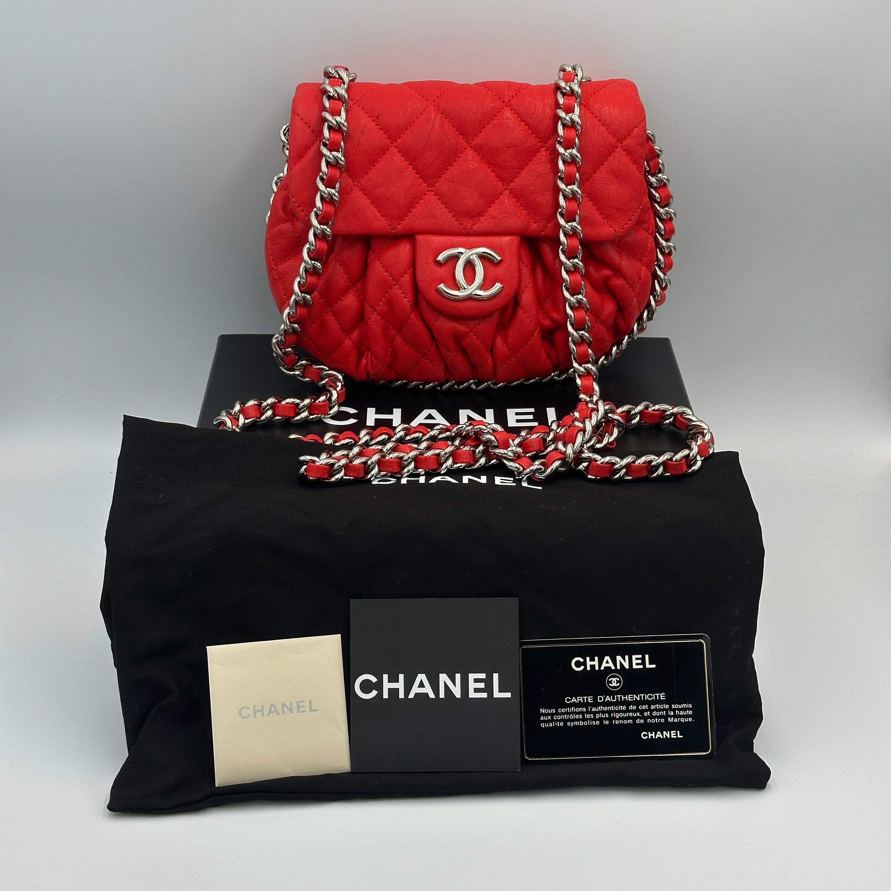 Chanel Washed Lambskin Chain Around Messenger - Red